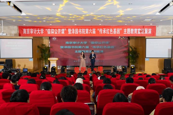 活动期间,学校也举办了江苏审计青年进校园交流分享会。来自江苏省审计系统的11名青年审计工作者代表走进南审“一站式”学生社区,向南审学子讲述审计工作的点点滴滴,传递审计青年的青春梦想。学校还举办了南京审计大学“信仰公开课”暨泽园书院第六届“传承红色基因”主题教育宣讲展演。